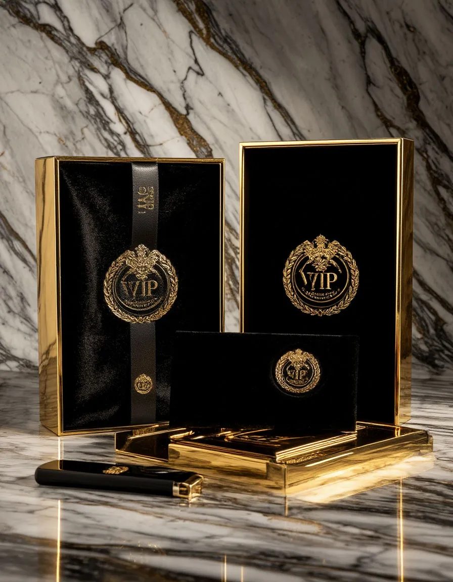 Эксклюзивные аксессуары премиум-класса в элегантной упаковке. Подчеркивает значимость партнера.